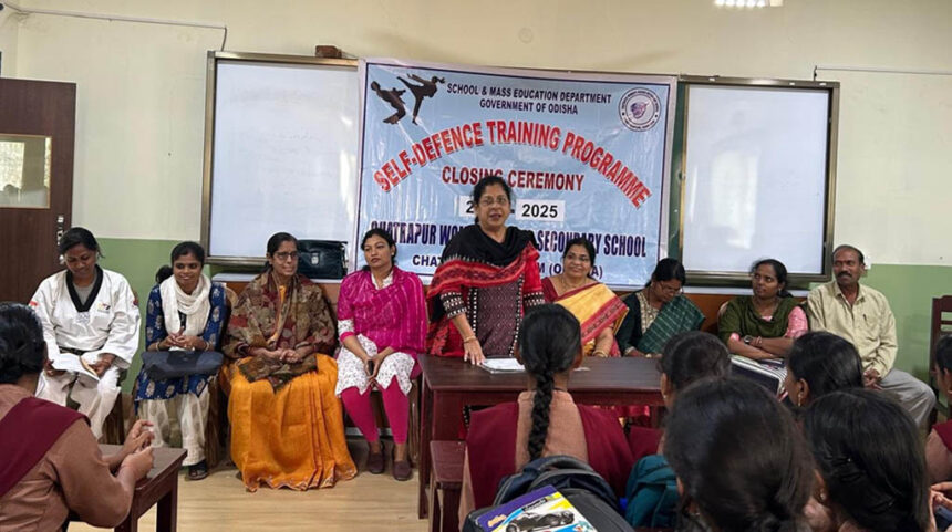 ବ୍ରହ୍ମପୁର: ଛତ୍ରପୁର ମହିଳା ଉଚ୍ଚ ମାଧ୍ୟମିକ ବିଦ୍ୟାଳୟରେ ୮ ଦିନ ଧରି ଚାଲିଥିବା ଆତ୍ମସୁରକ୍ଷା ତାଲିମ୍ ଶିବିର ଉଦ୍ଯାପିତ ହୋଇଯାଇଛି। ଅଧ୍ୟକ୍ଷା ସସ୍ମିତା ସାମନ୍ତରାୟ ତାଲିମ୍ ଗ୍ରହଣ କରୁଥିବା ଛାତ୍ରୀମାନଙ୍କୁ ଉତ୍ସାହିତ କରିବା ସହିତ ତାଲିମ୍ପ୍ରାପ୍ତ ଛାତ୍ରୀମାନଙ୍କୁ ପ୍ରମାଣପତ୍ର ସହ ରିଆକ୍ଟ ପୁସ୍ତକ ପ୍ରଦାନ କରାଯାଇଥିଲେ। ମାଷ୍ଟର ଟ୍ରେନର ମାମିନା ରାଣୀ ବେହେରା ୮ଦିନ ଧରି ୧୨୮ ଜଣ ଛାତ୍ରୀମାନଙ୍କୁ ଆତ୍ମସୁରକ୍ଷା ତାଲିମ୍ ପ୍ରଦାନ କରିଥିଲେ।